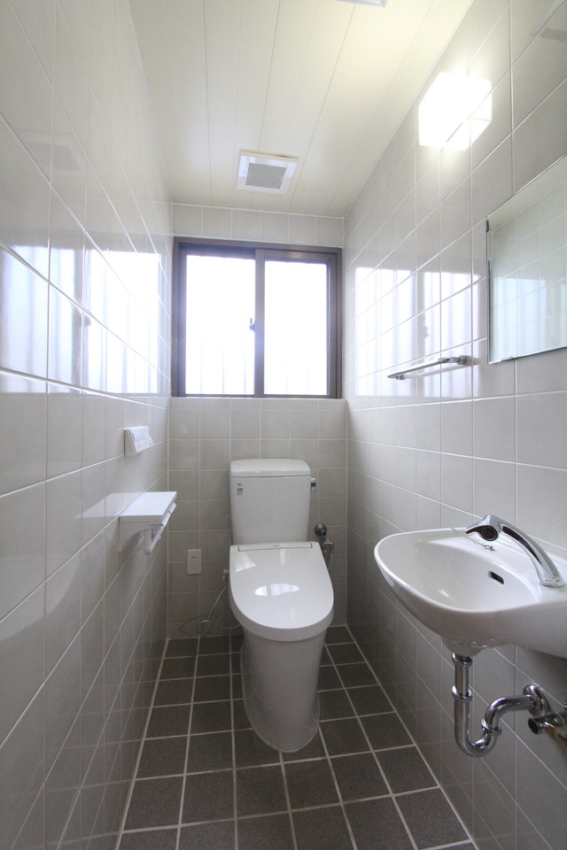 トイレは既存の場所に、便座と手洗器・紙巻器を新品へ交換。